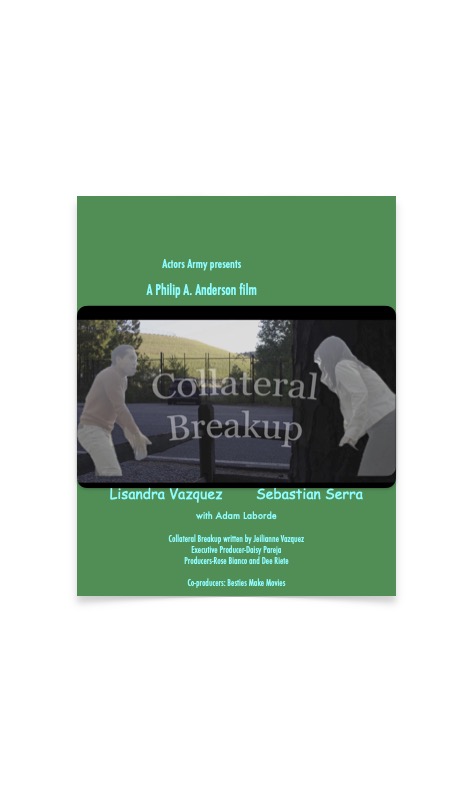 I am a producer in the short film, Collateral Breakup, written by Jeilianne Vazquez, directed by Philip A. Anderson, starring Lisandra Vazquez and Sebastian Serra. Dee Riete was my co-producer and we’ve had quite an education.